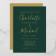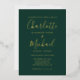 Featuring real gold foil and signature style names, this elegant wedding invitation can be personalized with your information in chic lettering on an emerald green background. Designed by Thisisnotme©