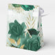 Design features a printed coloured with floral element in shades of emerald green over gold leaves and light green watercolor textures and peony blooms. Great for your wedding celebrations!