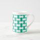 A stylish Bone China Mug, with a geometric pattern in trending Emerald Green and white.