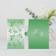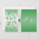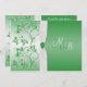 This monogrammed green and white floral wedding invitation has a white PRINTED ON ribbon and bow with a PRINTED emerald gemstone and diamond jewels brooch on it that matches the rsvp card shown below. The text is all customizable. The paper type is also customizable. If you require any other items in this design, please email your request to niteowlstudio@gmail.com. Matching items are shown below.