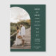 Cette belle carte magnétique Save the Date dispose d'une calligraphie élégante et d'une police de typographie sans serif simple avec une photo en forme d'arc sur un arrière - plan vert émeraude pour un look épuré minimaliste et moderne, ce qui est une belle façon d'informer sur votre prochain mariage. Annoncez à votre famille et à vos amis que vous vous mariez avec cette sauvegarde la carte magnétique de date et ajoutez une touche personnelle avec de belles photos de vous et votre prochaine moitié meilleure. La simplicité de ce design ajoute une touche d'élégance à votre mariage. Il fonctionne bien avec de nombreux thèmes mariages et certainement un grand ajout à votre mariage. Il suffit de customiser les noms et le libellé en quelques étapes simples et personnalisez la carte magnétique avec votre photo du couple heureux. Remarque : La calligraphie élégante du libellé "Enregistrer la date" et "invitation formelle à suivre" ainsi que les lignes et autres illustrations graphiques et éléments ne peuvent pas être modifiés, supprimés ou déplacés. Elles sont réparées.