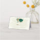 Beautiful romantic wedding place card featuring emerald green and beige flowers and some leaves .
