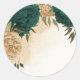 Beautiful fall wedding thank you sticker featuring emerald green and beige gold flowers with green leaves .