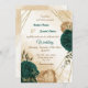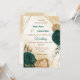 Emerald green beige gold botanical wedding invitation