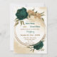Beautiful fall wedding invitations featuring emerald green and beige gold flowers with green leaves .