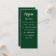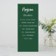 Program and menu card. Personalize and add your name, date and the menu. Emerald green coloured background, white text.