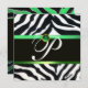 EMERALD GREEN BLACK WHITE ZEBRA FUR MONOGRAM INVITATION