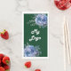 Personalize and add your business, company logo. Emerald green background colour. Decorated with blue watercolored roses, florals.