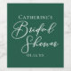 An elegant emerald green bridal shower wine label for an outdoor forest party. Personalize these pretty labels with the bride's name in chic white minimalist typography.