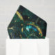 Elegant celestial emerald green tree faux stained glass pattern with gold accents with blue and green background