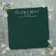 Featuring signature script names, this elegant return address envelope can be personalized with your names and address details in chic white lettering on an emerald green background. You can customize the background to your favourite wedding theme colour. Designed by Thisisnotme©