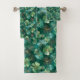 Emerald Green Clover Floral Pattern with Gold Line Art – Elegant Botanical Seamless Design Bath Towel Set