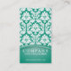 Elegant and Classy business card in beautiful emerald green and White colour cobination with a unique damask pattern and lots of space for your business information
