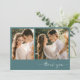 Notre Carte de remerciements Emerald Green Two Photo Mariage est la façon parfaite de remercier vos invités de se joindre à vous lors de votre journée spéciale. La belle couleur verte va parfaitement avec vos photos de mariage en plein air ou dans le jardin. Avec de l'espace pour deux photos et votre message sur le dos, vous pouvez présenter vos moments préférés du mariage et créer un souvenir personnalisé pour vos proches.