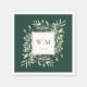 Featuring delicate watercolor greenery leaves on an emerald green background, these chic botanical paper napkins can be personalized with your monogram initials and special date. Designed by Thisisnotme©