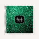 Emerald Green faux glitter sparkles Monogram Notebook
