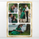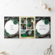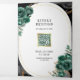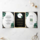 Emerald Green Floral Black Marble QR Code Wedding Tri-Fold Invitation