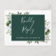 Une carte RSVP florale couleur vert émeraude élégante avec typographie chic. L'inverse vous donne vos détails et une demande amusante de chant invité. Conçu par Thisisnotme©