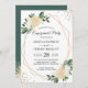 Emerald Green Floral Gold Frame Engagement Party Invitation