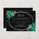 Emerald Green Floral Silver Black Wedding Details Enclosure Card