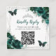 Emerald Green Floral Silver Quinceañera QR Code Enclosure Card
