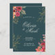 Celebrate your special day with a touch of timeless elegance through this customizable emerald green floral wedding invitation. Featuring a lush emerald green background adorned with delicate floral illustrations in soft red and pink pastel tones, this invitation exudes sophistication and charm.