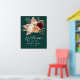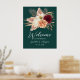 Romantic boho wedding welcome poster featuring burgundy, peach, and ivory florals with palm leaves on a deep emerald green background. Perfect for fall or elegant forest weddings. Fully customizable with your names and wedding date. Need help personalizing? Just email bpkolman@gmail.com