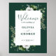 This elegant emerald green botanical floral wedding welcome sign can be personalized with your information in modern typography. Designed by Thisisnotme©