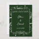 Personalize a unique wedding announcement with an Emerald Green Flourish Save the Date. Announcement design features an elegant leafy flourish with matching coloured background and text you can personalize with your wedding date details. Additional save the date announcement available for this design in a variety of colours.