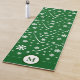 A yoga mat in Emerald Green in tones with white Flower Power pattern, floral ornaments and a dark green monogram letter for your meditative exercises!