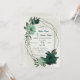 Unique wedding invitation featuring romantic emerald green and soft green flowers and green leaves botanical geometric frame.