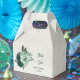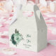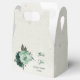 Unique wedding favour box featuring romantic emerald green and soft green flowers and green leaves botanical geometric frame.