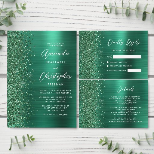 Glam Brushed Metal Glitter Emerald Green WeddingDesigned by Akhates Designs