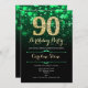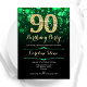 90th birthday party invitation. Elegant emerald green and black design with faux glitter gold. Features stylish diamonds, bokeh lights and script font. Men or women bday invite. Perfect for a stylish adult birthday party. Personalize with your own details. Message me if you need further customization. Printed Zazzle invitations or instant download digital printable template.