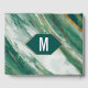 Modern, artsy, and chic faux printed gold, emerald green, and white abstract agate marble patterned wedding guestbook. This classic and sophisticated design is perfect for the trendy and stylish marrying couple. Personalize with your own message on the front as well as a customized monogram initial on the back. All photo print design.