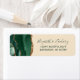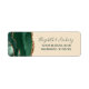 Le bord gauche de cette élégante étiquette d'adresse de retour de faire-part de mariage moderne comporte une bordure d'aquarelle vert émeraude bordée d'une parties scintillant en faux or. Le texte personnalisable combine écriture manuscrite verte et polices de cuivre sur un arrière - plan beige de champagne.