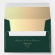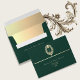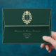 Elegant emerald green and gold baroque wedding envelope with a luxurious monogram crest and printed return address. Perfect for sending formal wedding invitations, this custom envelope adds a timeless and regal touch. Designed to match emerald green and gold wedding suites, it is ideal for classic, royal, or luxury weddings. Personalize with your names, initials, and return address for a coordinated and stylish presentation. A sophisticated choice for couples who want their stationery to make a lasting impression.