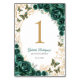 Emerald green gold Quinceanera celebration table number cards. Features, script font, gold butterflies, watercolor roses and tiara. Perfect for an elegant princess style glam celebration. Personalize with your own details. Printed Zazzle invitations or instant download digital printable template.