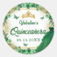Emerald Green Gold Glitter Floral Quinceanera Classic Round Sticker