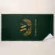 Emerald green gold laurel wreath name monogram beach towel