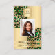 On the front: Emerald green and golden lepard pattern and faux gold colour blocks. Personalize and add your business logo, profile photo, name, title.