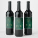 Emerald Green & Gold Monogram Wildflower Wedding Wine Label