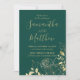 Emerald Green & Gold Peony Modern Floral Wedding Invitation