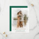 Easily personalize these emerald green and gold wedding photo save the date cards featuring a modern script font.