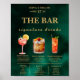 This signature drinks bar menu poster is ideal for couples seeking a polished and clear way to present their personalized beverage creations. The deep emerald green brings a sense of richness, while the opulent gold accents (or gold foil effect, if applicable) provide a touch of lavish glamour. This design perfectly complements modern elegant, minimalist chic, or luxurious wedding themes, ensuring your bar area is both functional and beautifully styled. Your guests will love discovering your specially crafted drinks!