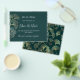 A modern and elegant Save the Date for a wedding. Emerald green background decorated with ginkgo leaves. Personalize and add a date and names. The text: Save the Date is written with a large trendy hand lettered style script.