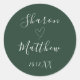Emerald Green Handwritten Script Wedding Favour Classic Round Sticker