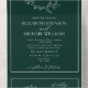 We're loving this trendy, modern emerald green All-in-one Simple, elegant, and oh-so-pretty, it features a hand drawn leafy wreath encircling a modern wedding monogram. It is personalized in elegant typography, and accented with hand-lettered calligraphy. Finally, it is trimmed in a delicate frame. To remove meal choices in the RSVP section, we have created a how-to video for you here: https://youtu.be/ZGpeldQgxoE. Part of a matching wedding set. Veiw suite here: