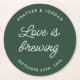Emerald Green Love Is Brewing Wedding Reception Round Paper Coaster