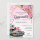 Emerald Green Lowrider Pink Rose Chola Quinceanera Invitation